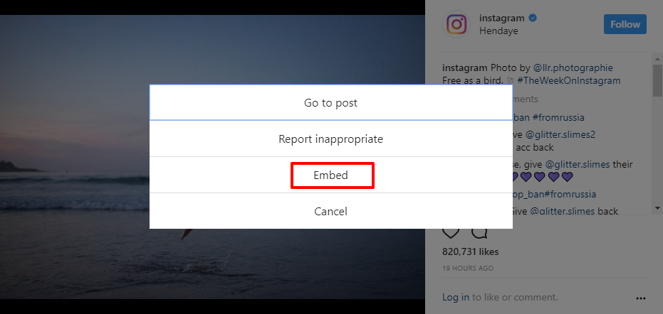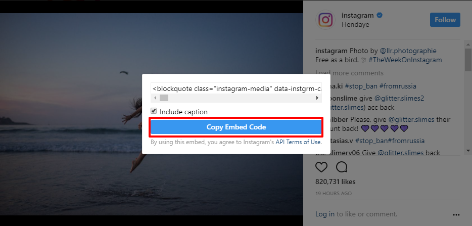 Embed’ option. You’ll see a pop-up, which will allow you to copy a long line of text which can look confusion since it’s written in HTML code. Once you have this line of text please let your account manager know where you’d like it placed and on what page since they have the ability to add it to your site. They’ll be able to add the line of code to the location of your choice so traffic visiting that page can then see your post of choice!